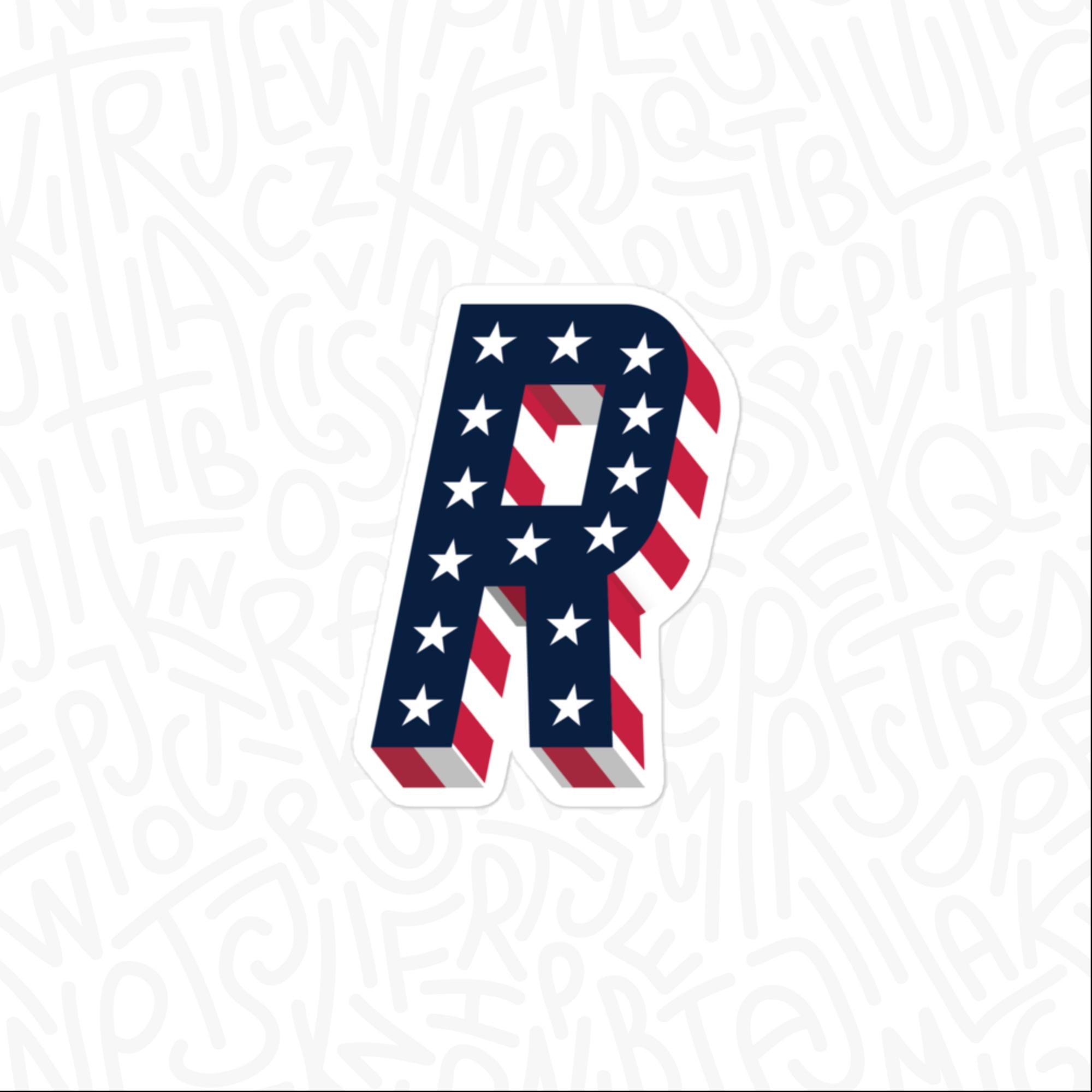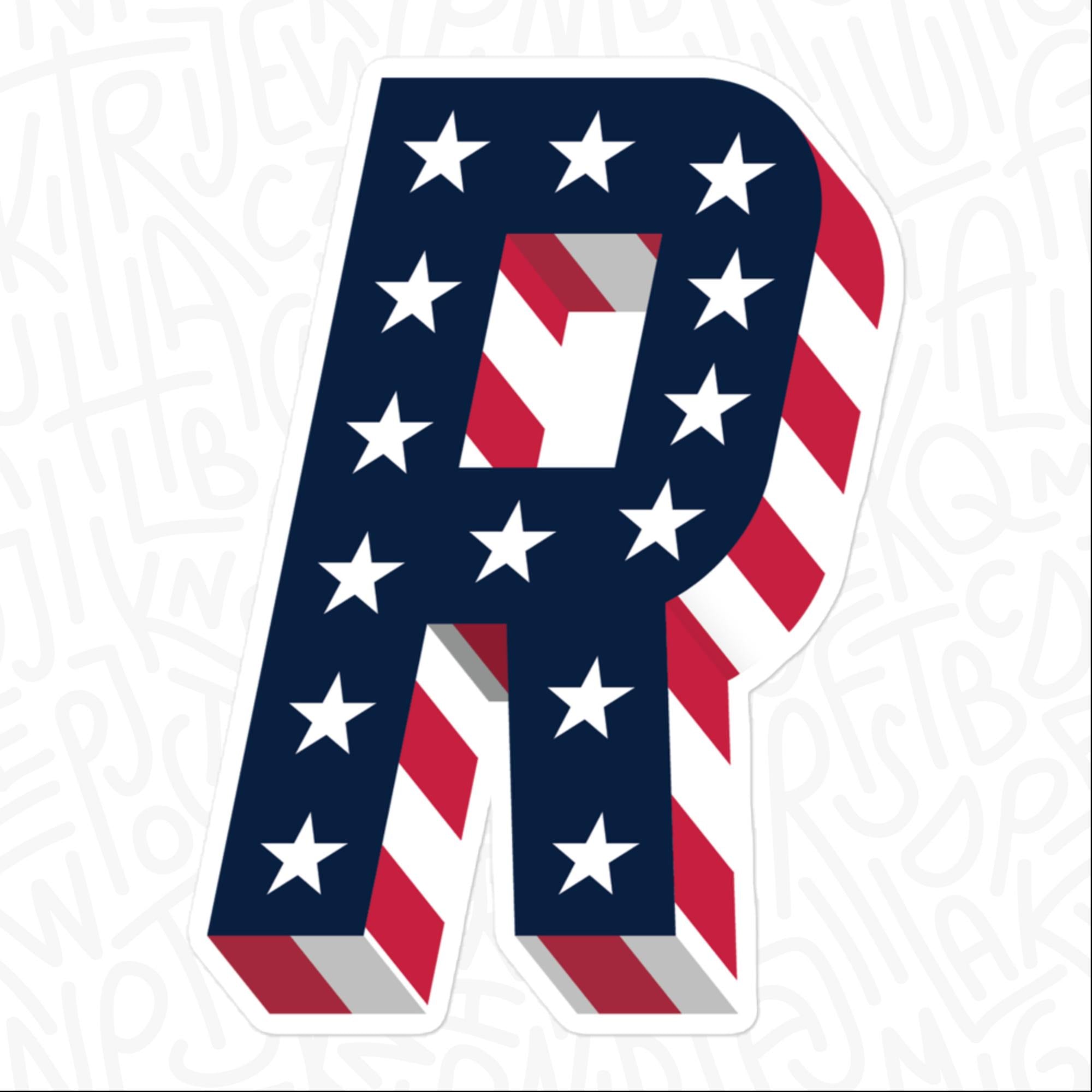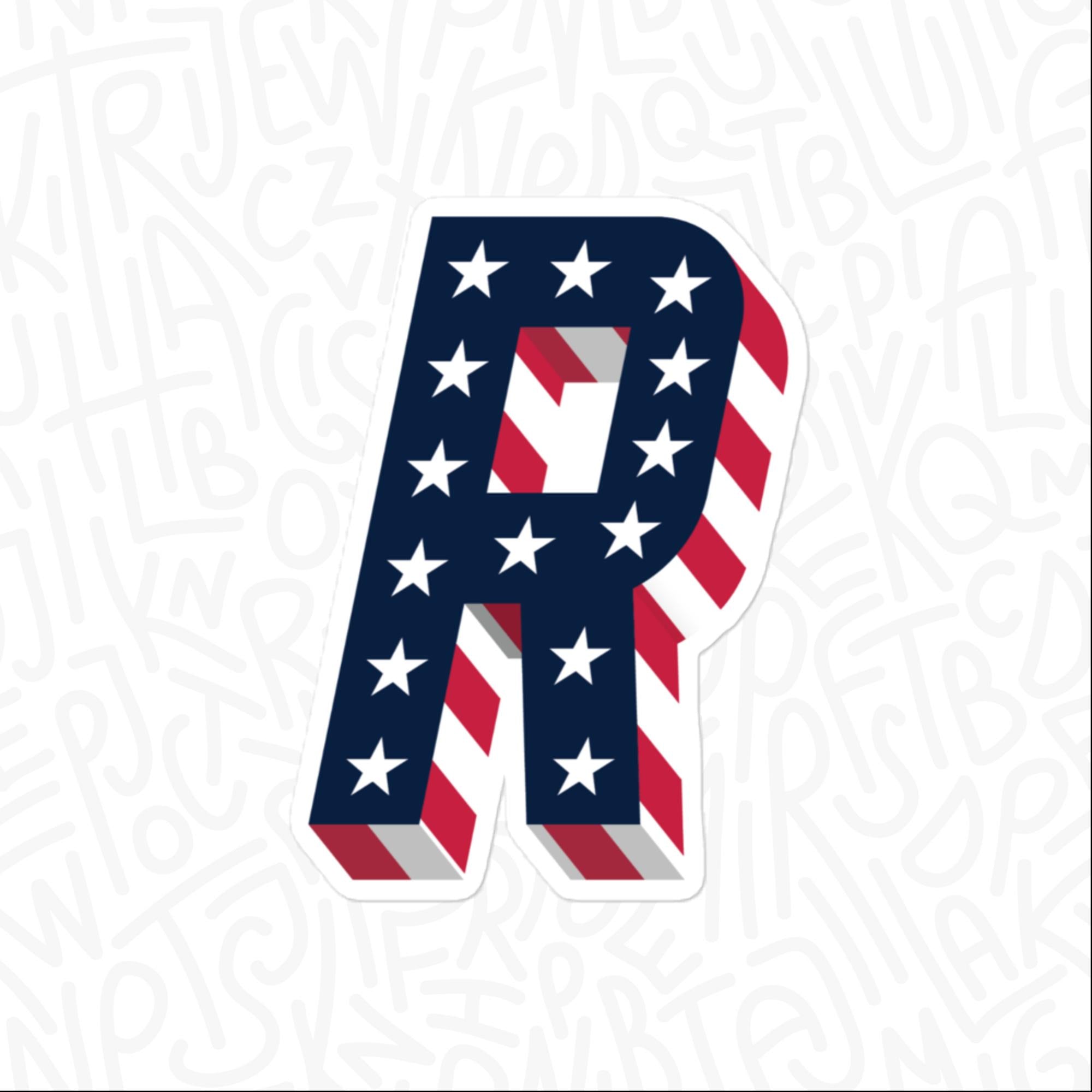 Patriotic R, Vinyl Alphabet Sticker, Petite | Large | Super-Size