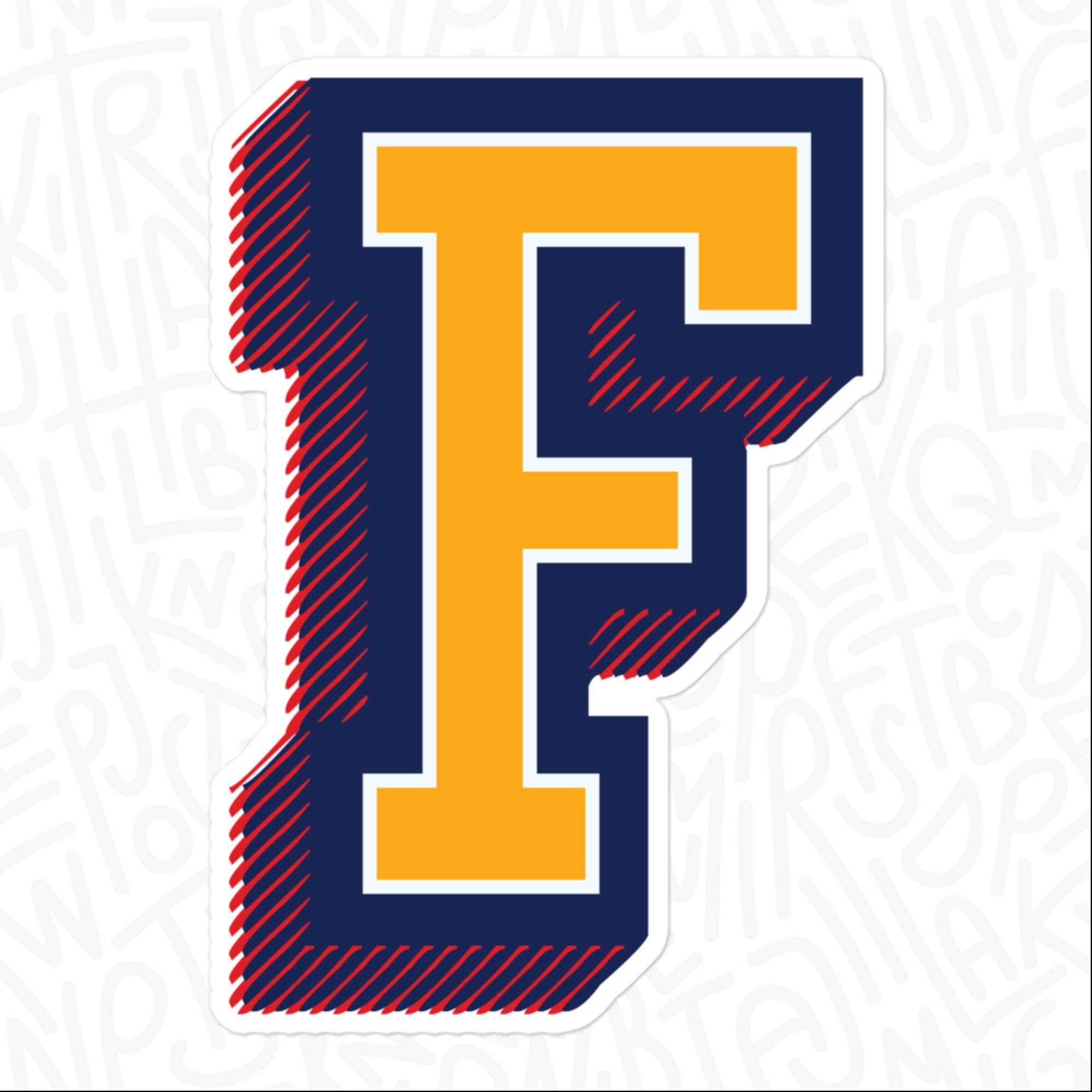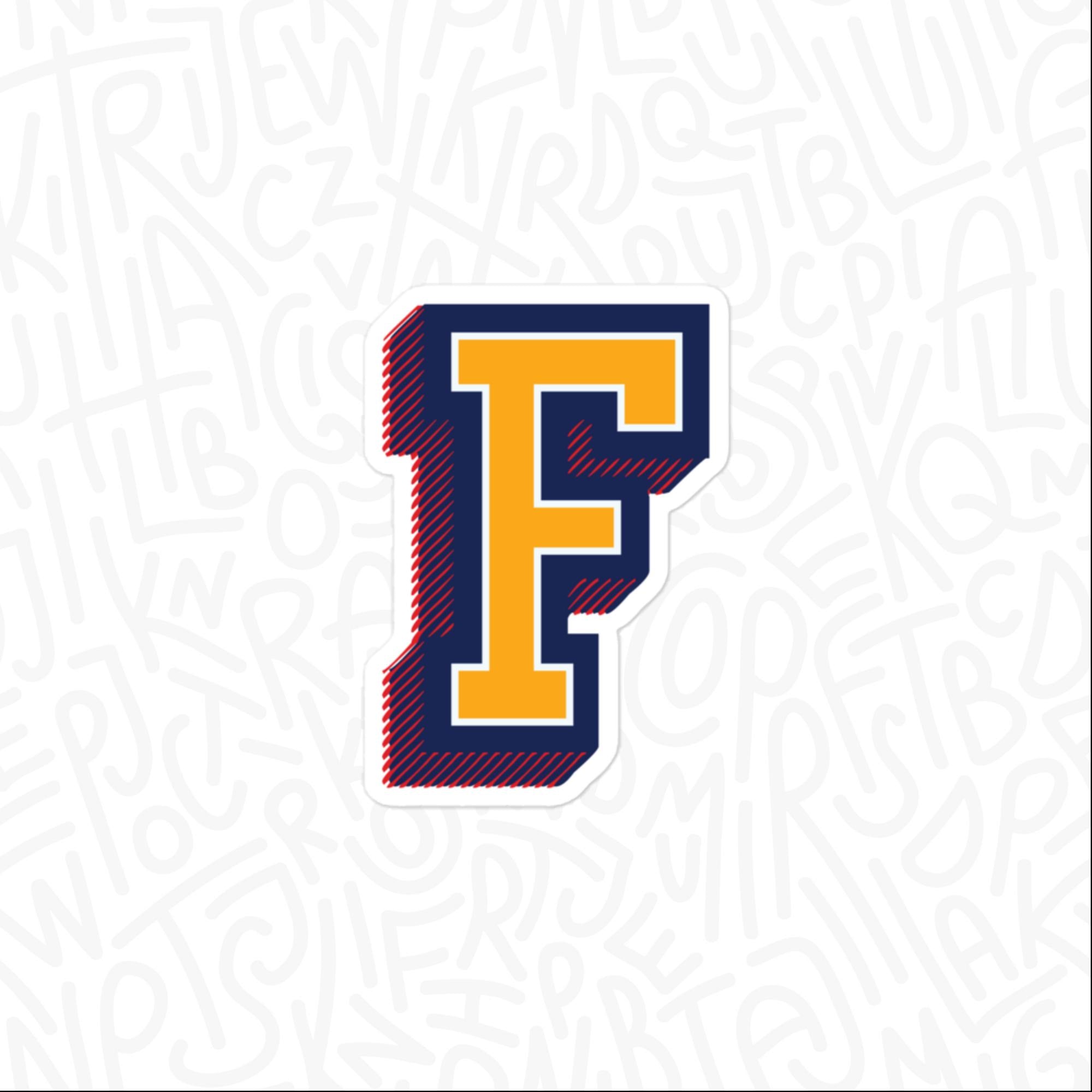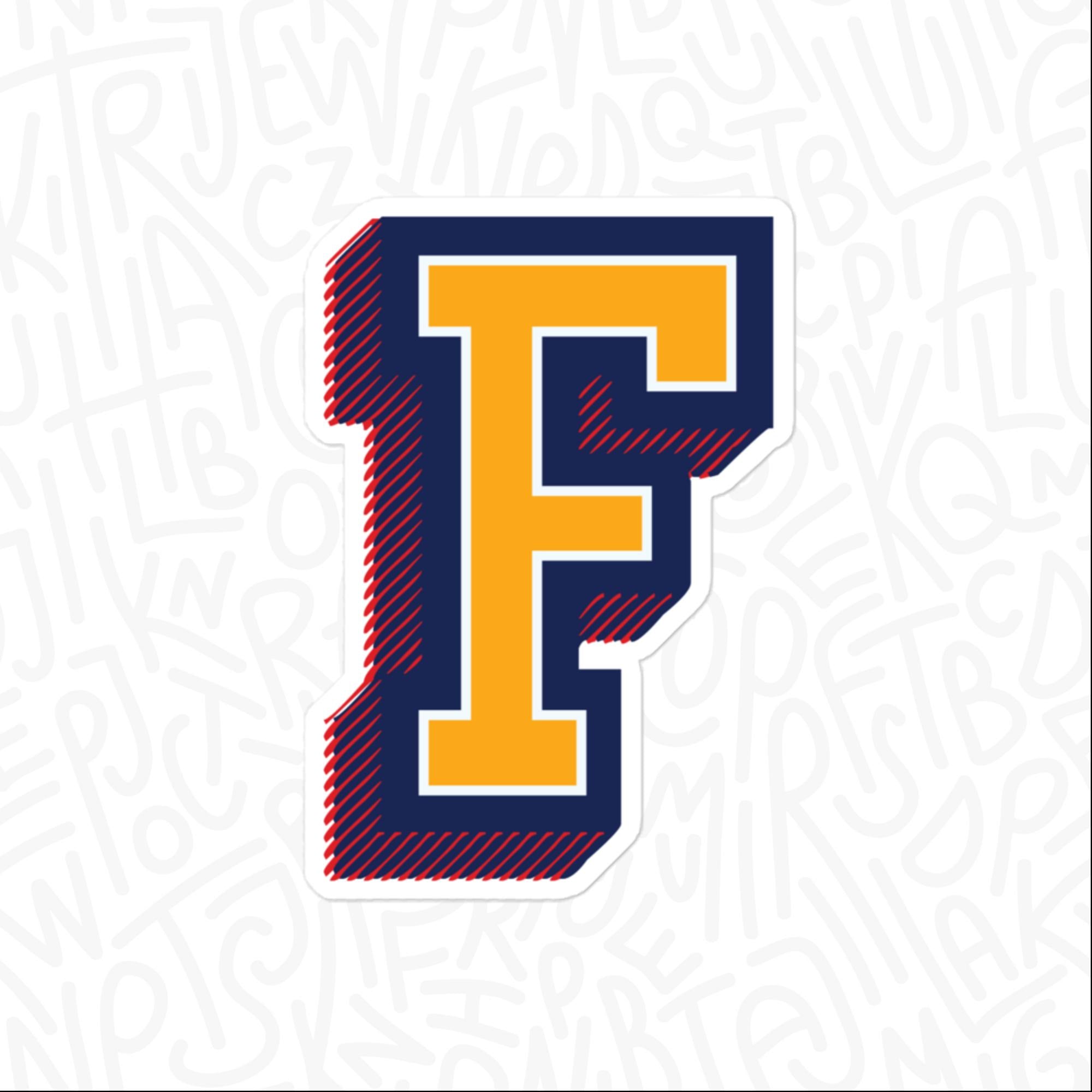 Varsity F, Vinyl Alphabet Sticker, Petite | Large | Super-Size