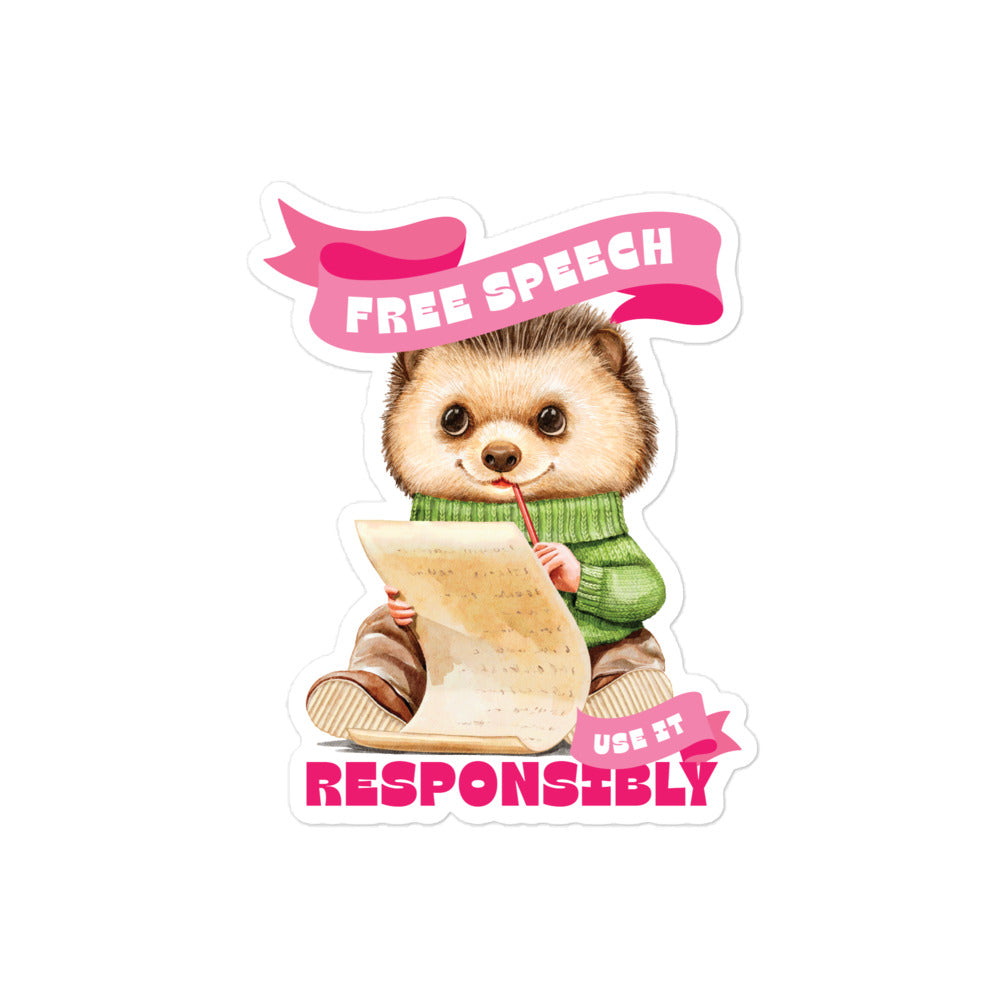 Free Speech Use It Responsibly Hedgehog Sticker, Large 4in Vinyl Sticker