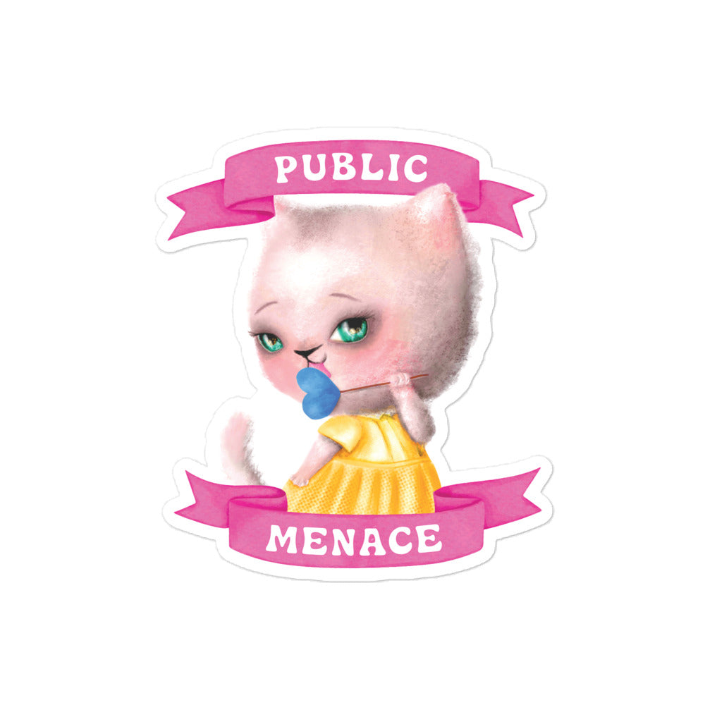Public Menace Kitty Sticker, Large 4in Vinyl Sticker